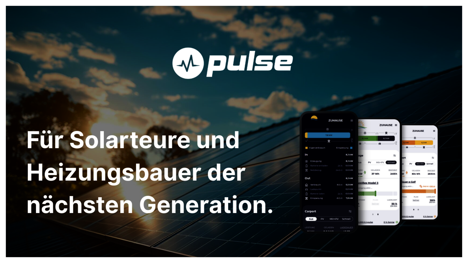 Die Energiewelt wird dynamisch – und pulse Energy sorgt dafür, dass regionale Solarteure und Heizungsbauer nicht den Anschluss verlieren. Als Ausgründung aus der Technischen Universität München (TUM), des Fraunhofer FiT, und der Stanford University haben wir mit 5 regionalen Solarteuren eine Komplettlösung entwickelt, mit der Sie Ihren Kundinnen und Kunden ein zukunftsfähiges Energiepaket anbieten können – ganz wie die großen Player der Branche, aber unter Ihrer eigenen Marke.