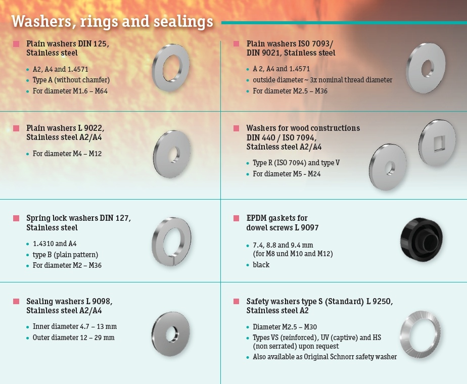 All articles with relevance for fastening technology can be supplied within the company‘s overall programme. These comprise not only those parts which are normed in accordance with DIN and ISO, but also non-normed fasteners, special parts manufactured in accordance with prototypes and drawings, manufacturer-bounded items and C-parts.