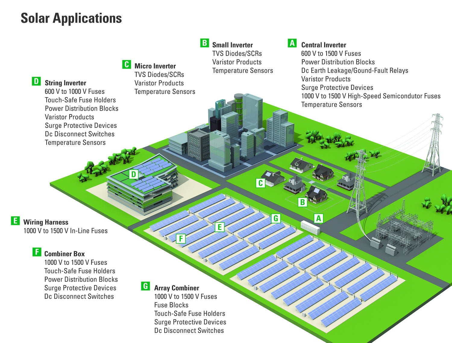 With over 60 million devices installed in power systems, Littelfuse understands the challenges facing the renewable energy market. Our solar-rated fuses, relays, TVS diodes, varistors, power distribution blocks, dc disconnect switches, surge protective devices and other products help protect equipment in renewable energy applications including solar PV, wind, energy storage and green hydrogen.