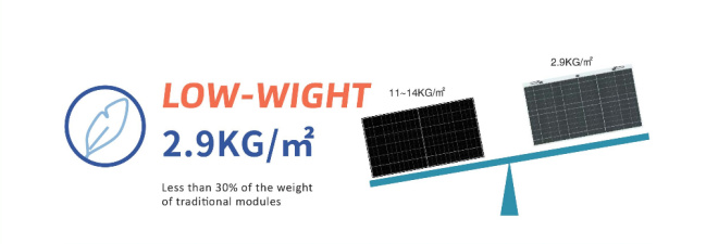 Compared to traditional glass modules, ZKFN Solar's lightweight photovoltaic modules are more than 70% lighter and can be widely applied in various situations with insufficient load-bearing capacity.