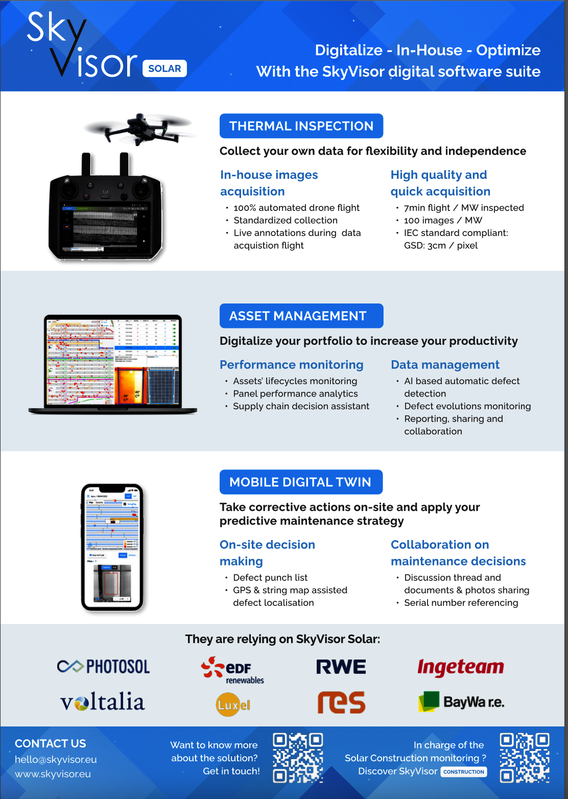 Visit us at Booth A4.324 to explore our platform and the new DJI Dock 3 drone-in-a-box, presented in collaboration with U-ROB. Maximize your solar asset efficiency with SkyVisor — your everyday toolbox!