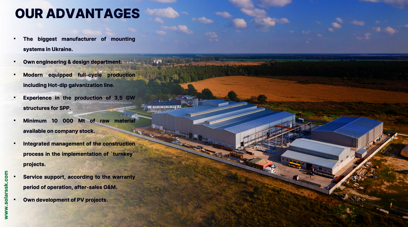 Today we are the largest manufacturer of the mounting systems for PV sector in Ukraine and Eastern Europe.