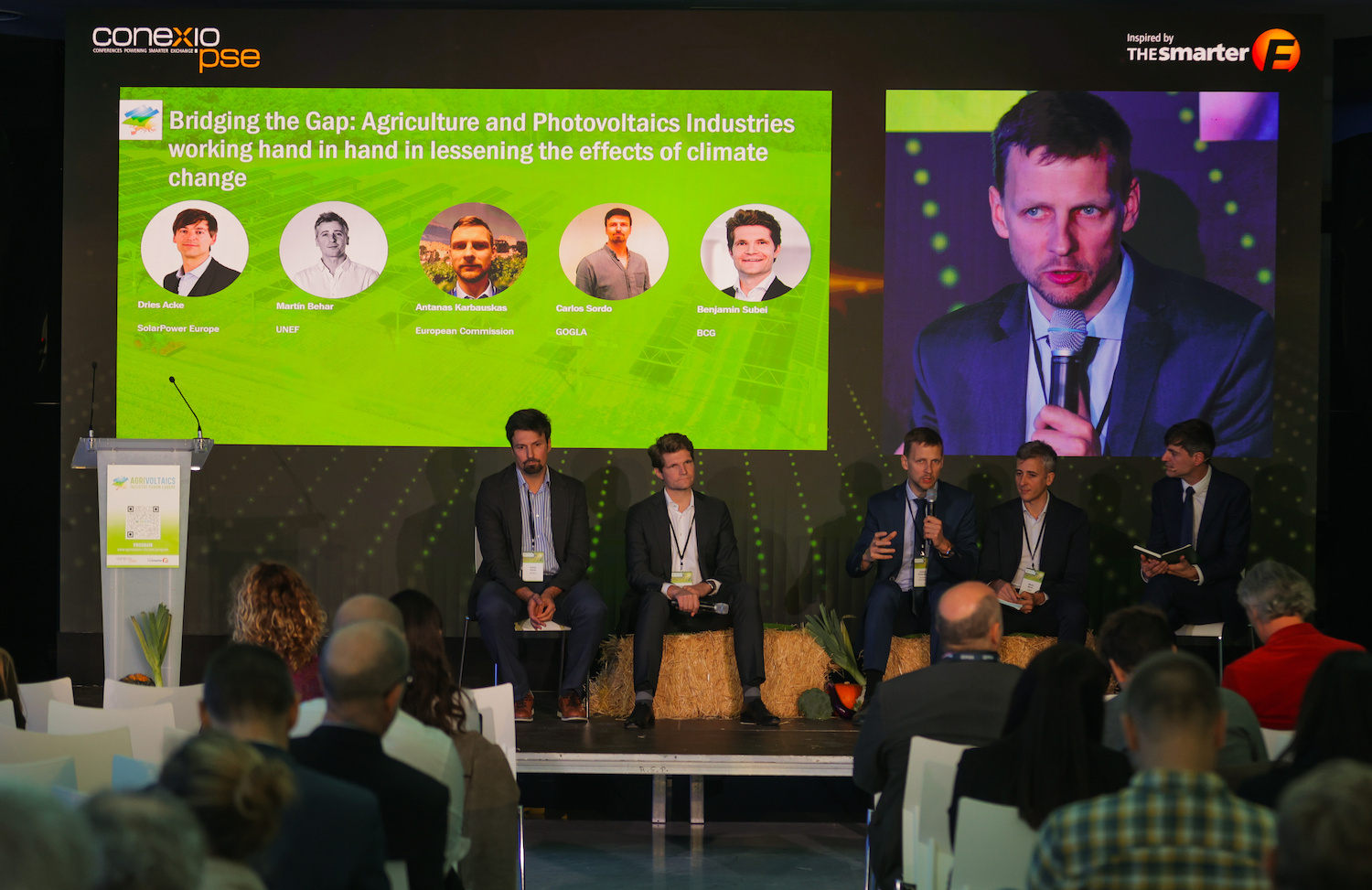 Je nach Anbausorte bis zu 60 Prozent höhere Erträge, 20 bis 30 Prozent Wasserrückhalt, 7 Prozent höhere Bodentemperaturen in Kaltperioden und 6 Grad kältere Bodentemperaturen in heißen Wetterphasen – diese eindrucksvollen Zahlen zu den gewinnbringenden Effekten von Agri-PV stellte Dries Acke, stellvertretender CEO von SolarPower Europe, zum Auftakt des Forums vor. Hervorgehoben wurde auch, wie wichtig die Agri-PV für die Akzeptanz des weiteren Ausbaus der Solarenergie in Europa ist. Denn um den Rückhalt in der Bevölkerung dafür zu sichern, ist es wichtig, die regenerative Energieerzeugung in Einklang mit landwirtschaftlicher Erzeugung zu bringen, statt um Flächen zu konkurrieren.