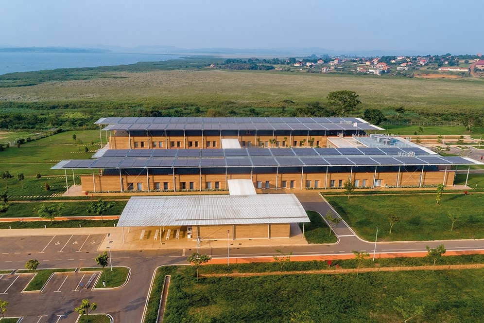 Das Children‘s Surgical Hospital in Entebbe ist ein hervorragendes Beispiel klimagerechter Bauweisen und Verwendung lokaler Materialien in Verbindung mit der Nutzung erneuerbarer Energiequellen. Das Dach wird als fünfte Fassade ausgebildet. Auf das Konstruktionsraster abgestimmt, sind gut proportionierte PV-Flächen mit klarer Struktur angeordnet. Der konzeptionelle Ansatz einer „einfachen“ Bauweise mit einer äußerst sinnfälligen Lösung für großflächige Energiedächer stellt nicht nur für den afrikanischen Kontinent eine vorbildliche Lösung dar, sondern lässt sich auch mustergültig auf andere Klimaregionen und Bauaufgaben übertragen.