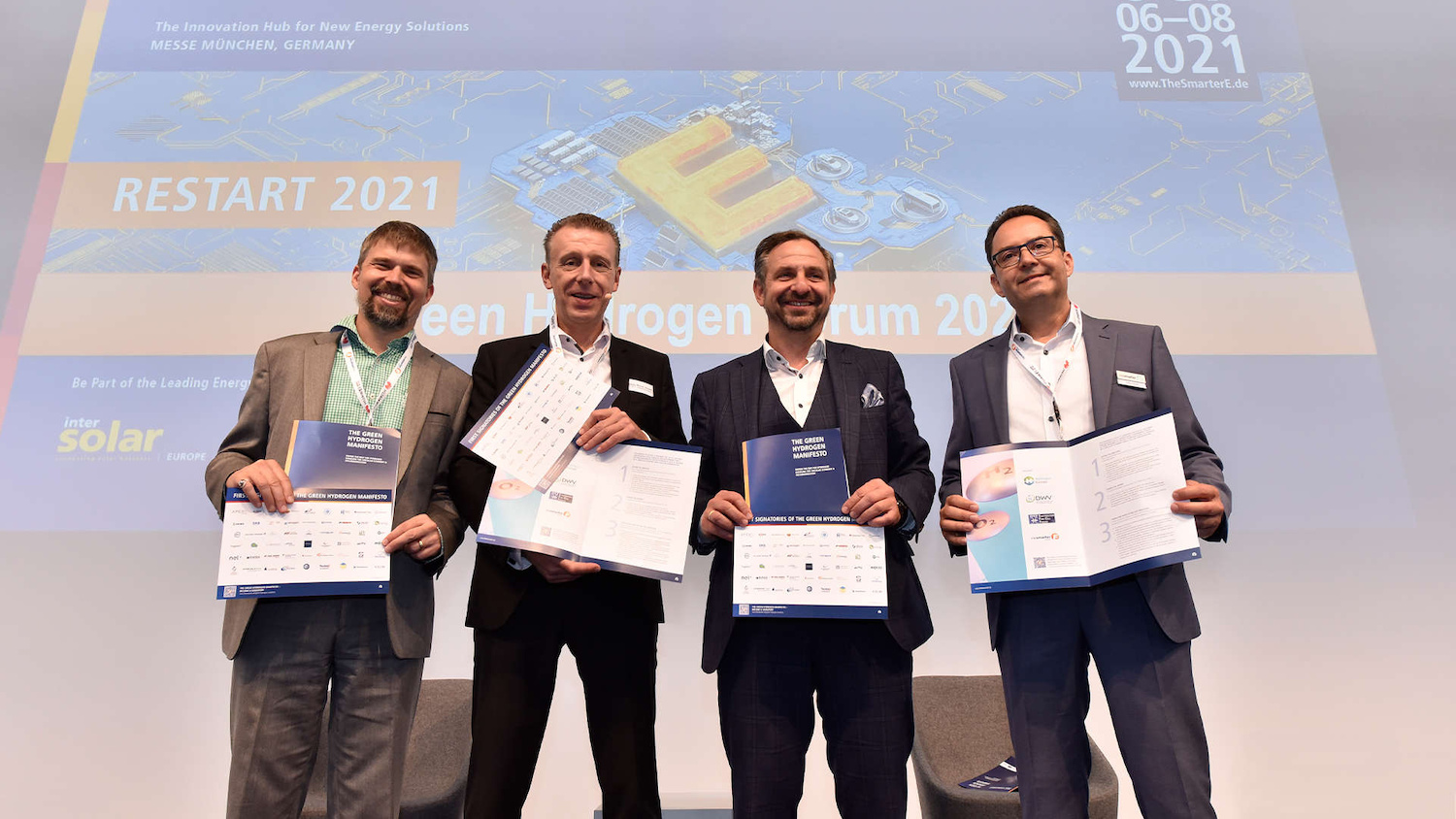 Supporters can still sign the manifesto on site at ees Europe Restart 2021 until October 8. In the closing session of the Green Hydrogen Forum in hall B6 on October 8, from 2:45pm–3:30pm, the manifesto will once again be discussed.