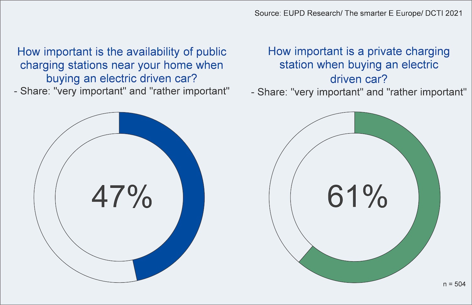 “The private households’ focus on their own charging station for an electric car is not surprising. Access to public charging stations can be rather challenging at times and unpredictable with respect to continuously increasing charging costs. On the contrary, electricity cost for residential customers is transparent and relatively cheap. Additionally, end consumers have a choice what kind of electricity is being used – ideally solar electricity from their own roof, comments Dr. Martin Ammon, Managing Partner of EUPD Research.