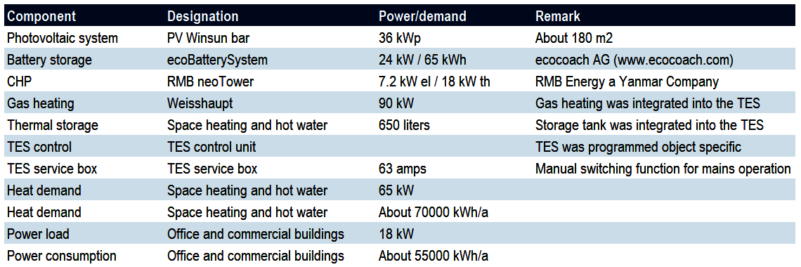 In the winter half-year, the CHP unit takes over most of the electricity and heat generation at GRAVAG's headquarters. The plant is powered one hundred percent by biogas from the region. The CHP has an electrical output of 7.2 kW and a thermal output of 18 kW. During electrical load peaks, the TES draws additional electricity from the public grid. If the thermal output of the CHP is not sufficient in winter, a gas heating system is switched on.