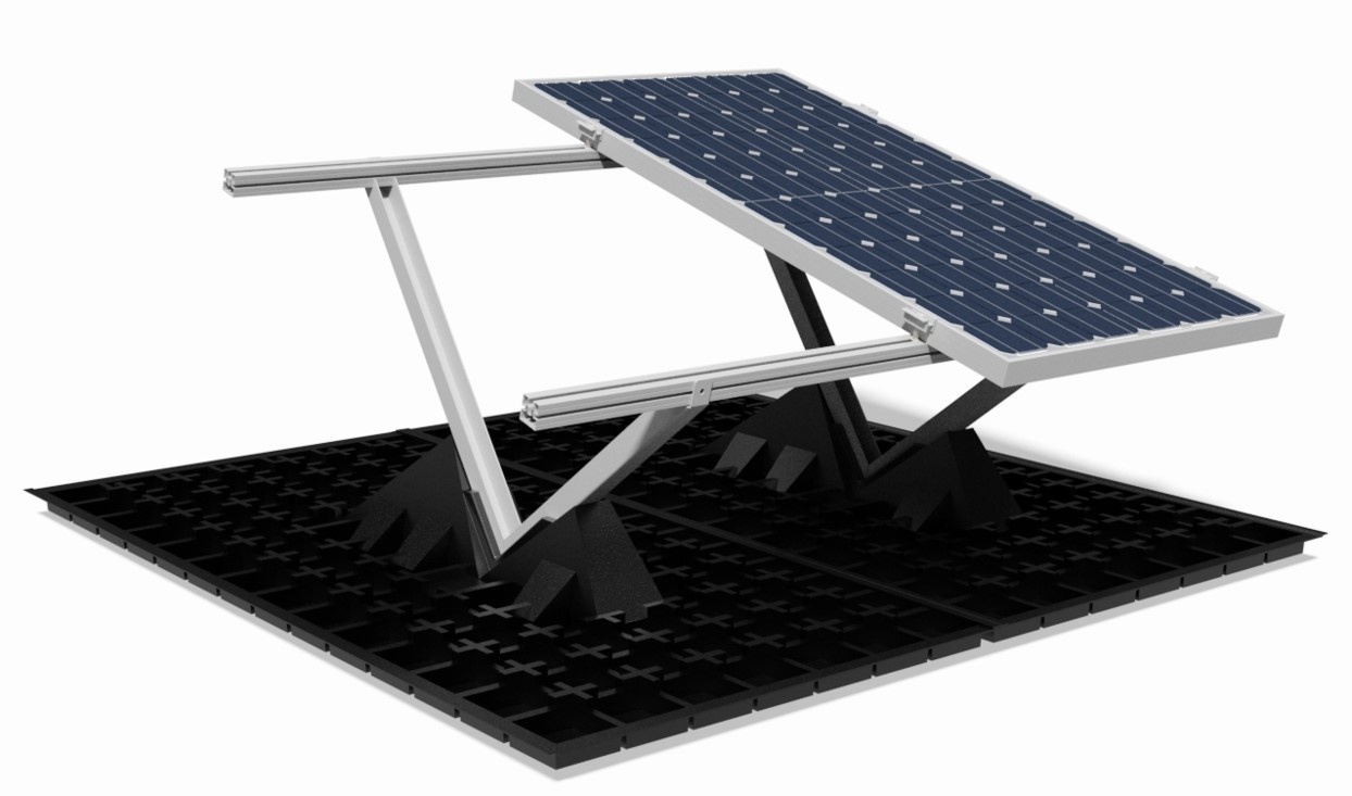 The system relies on modular units each consisting of a 2-sqm HDPE plate or trough, a bracket and an approximately 2-m-long module support profile along with all of the necessary small parts. This substructure can be installed on any root-resistant flat roof. The roof slope may not exceed 5°; otherwise our system must be installed with additional measures to prevent shearing.